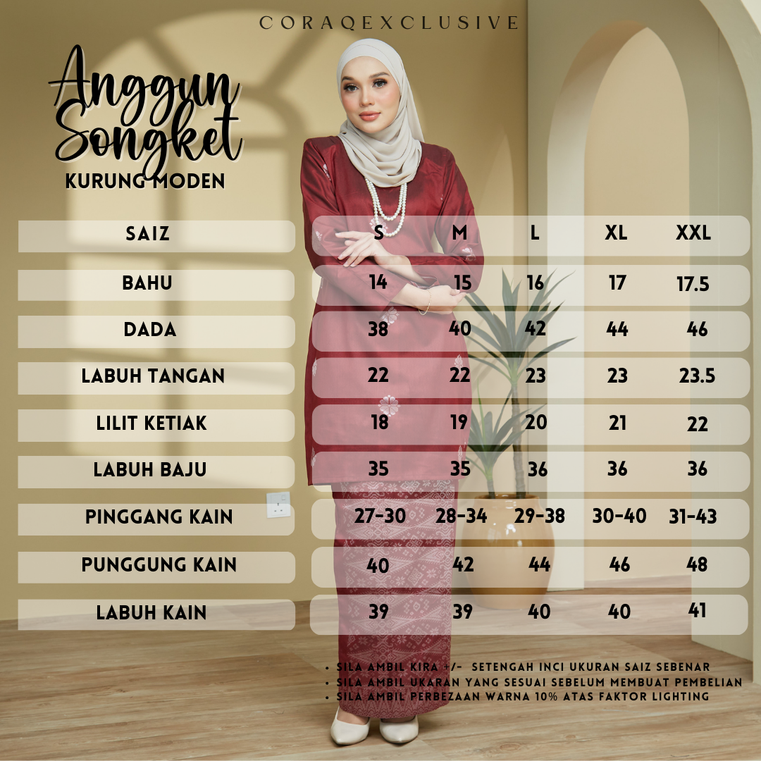 ▪️ Sila ambil kira +/- inci ukuran size sebenar.